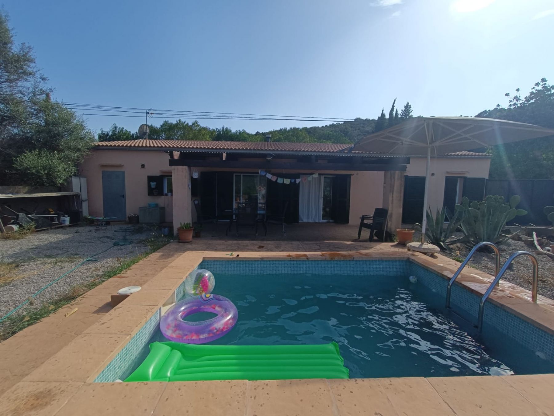 Finca rústica situada entre la carretera de Capdepera y Artá. Se encuentra cerrada, distribuida en un gran salón comedor con cocina abierta, dos dormitorios dobles, un baño completo. Piscina. Luz de alternadora y agua de aljibe Ref: 2224
