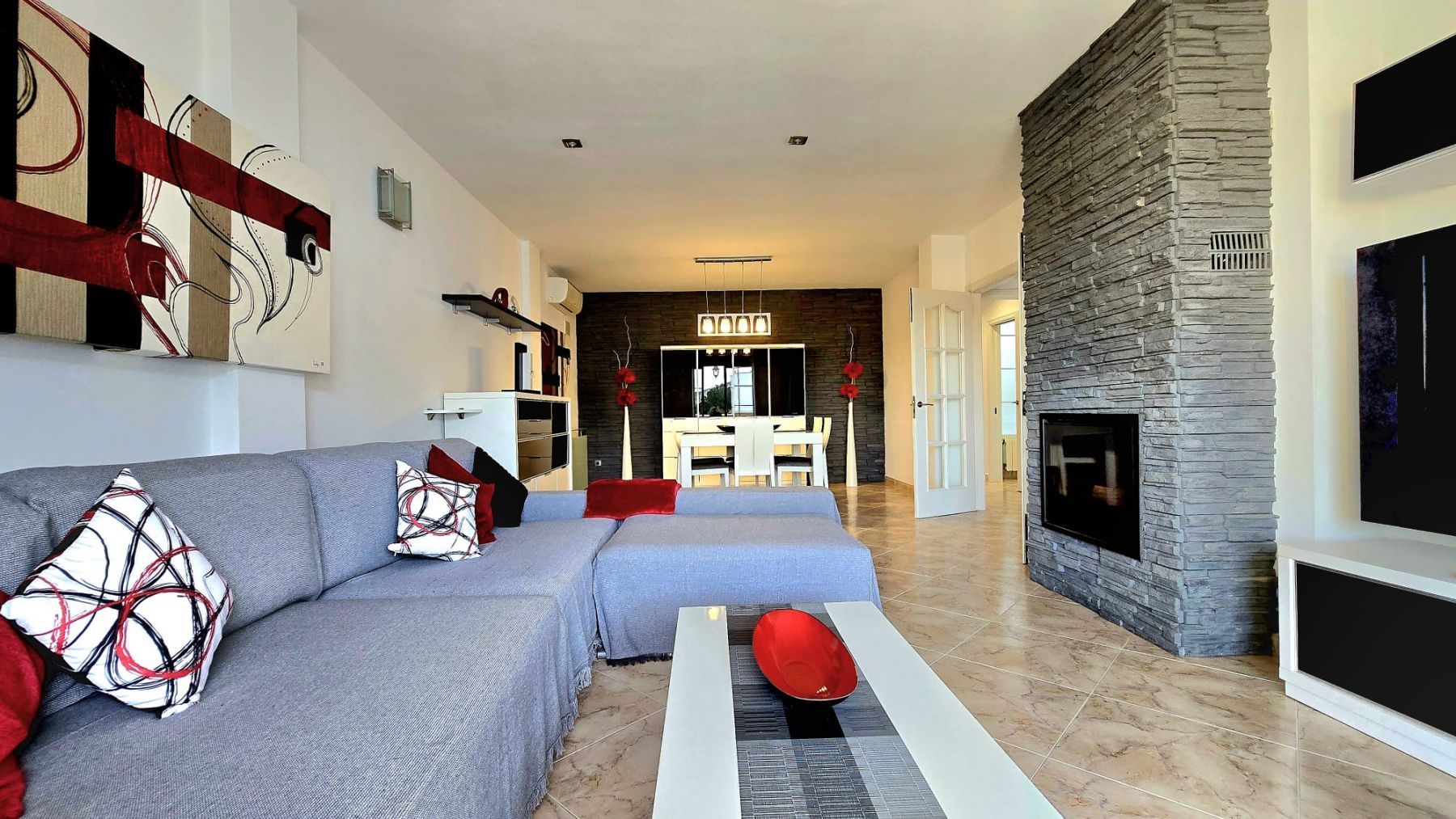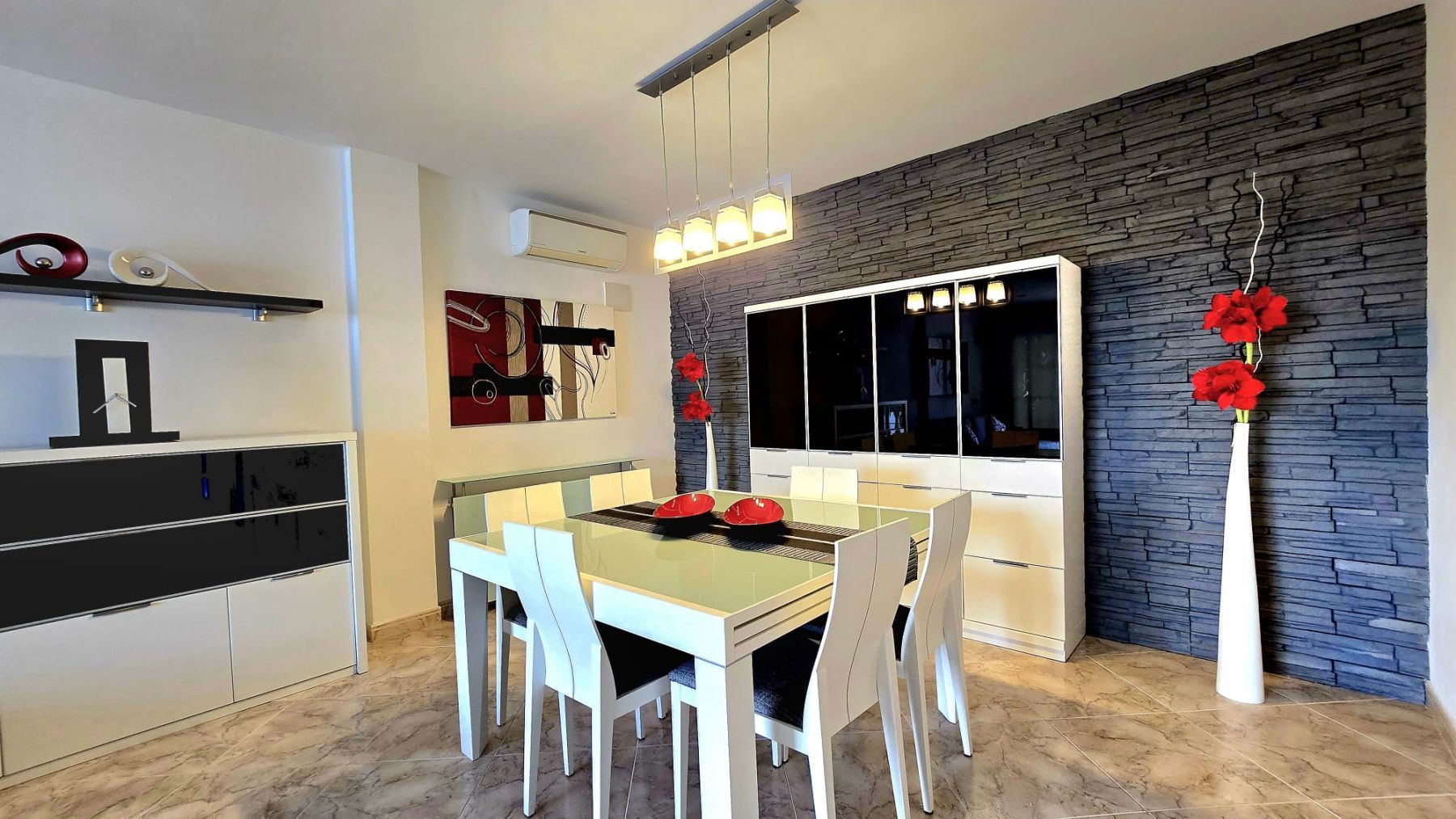 Amenities: Air conditioning in the master bedroom and living-dining room.