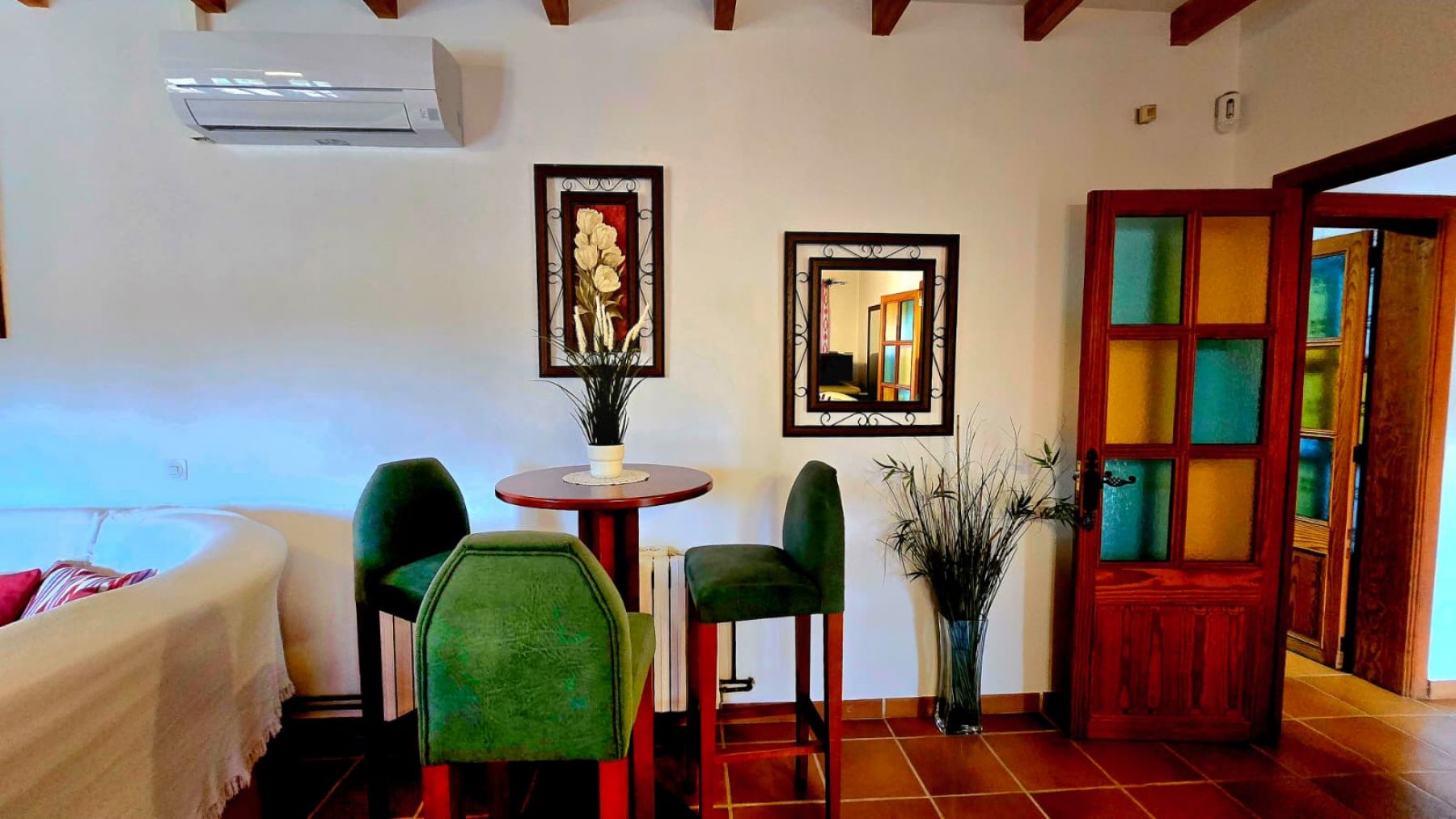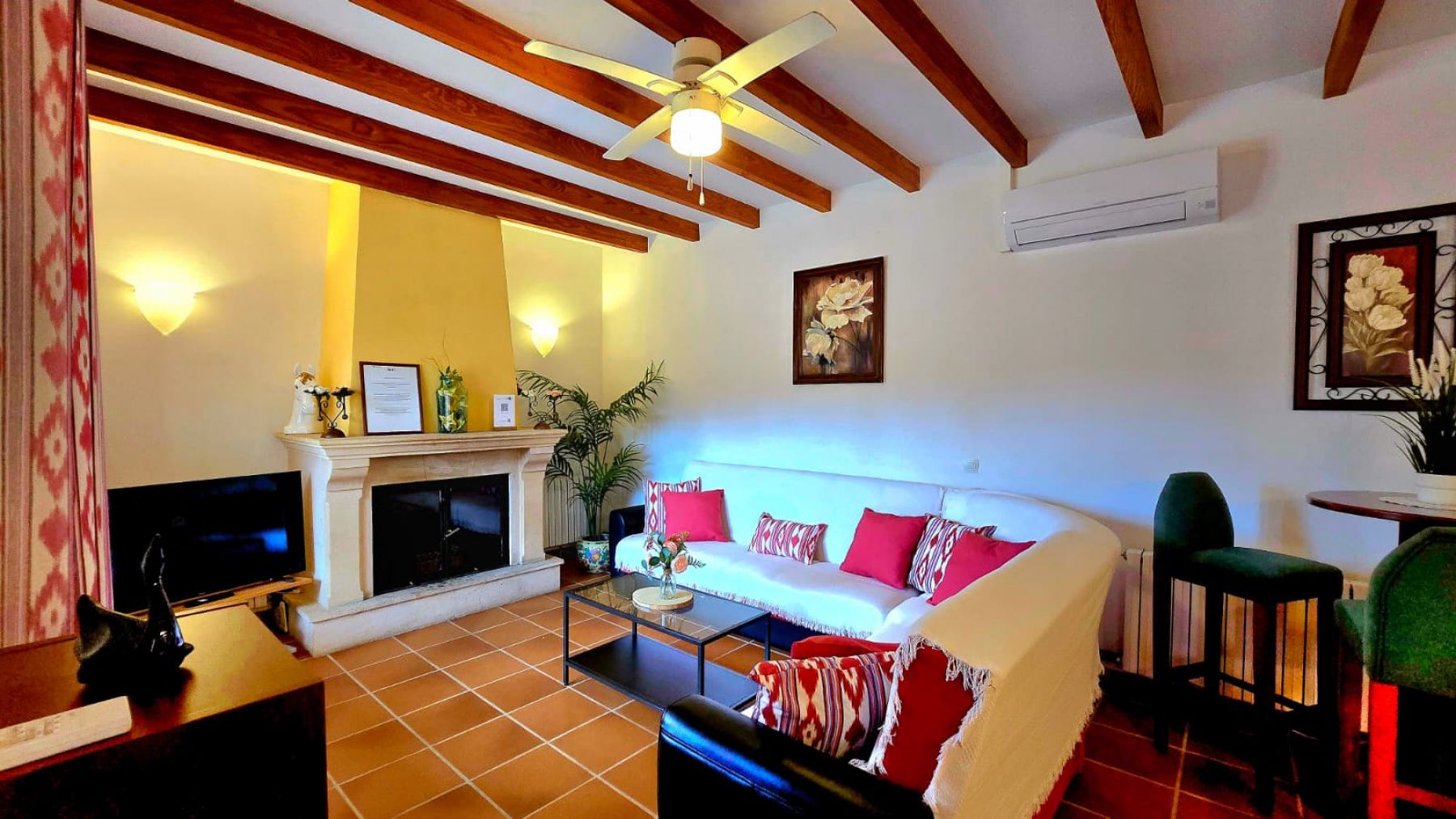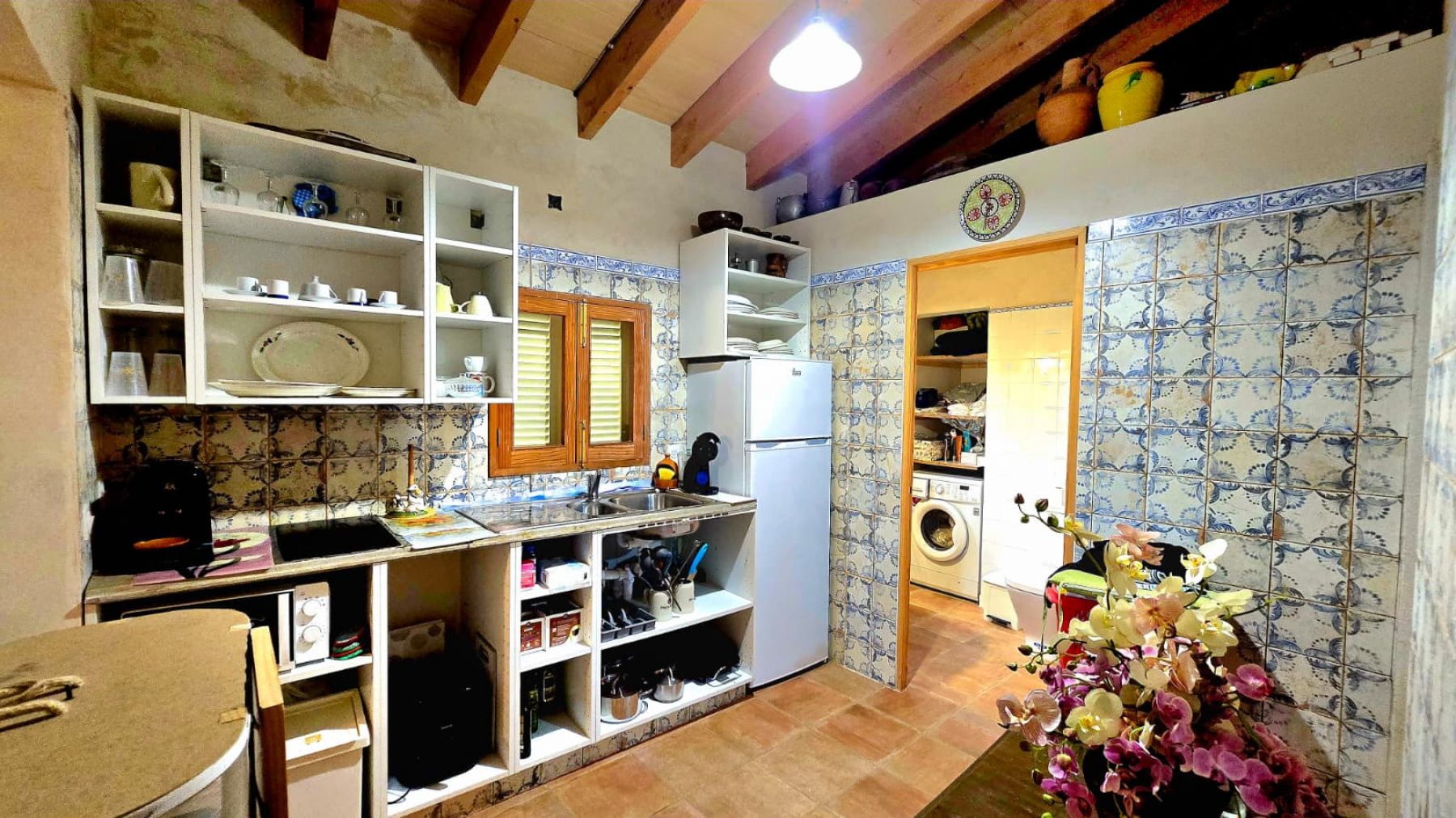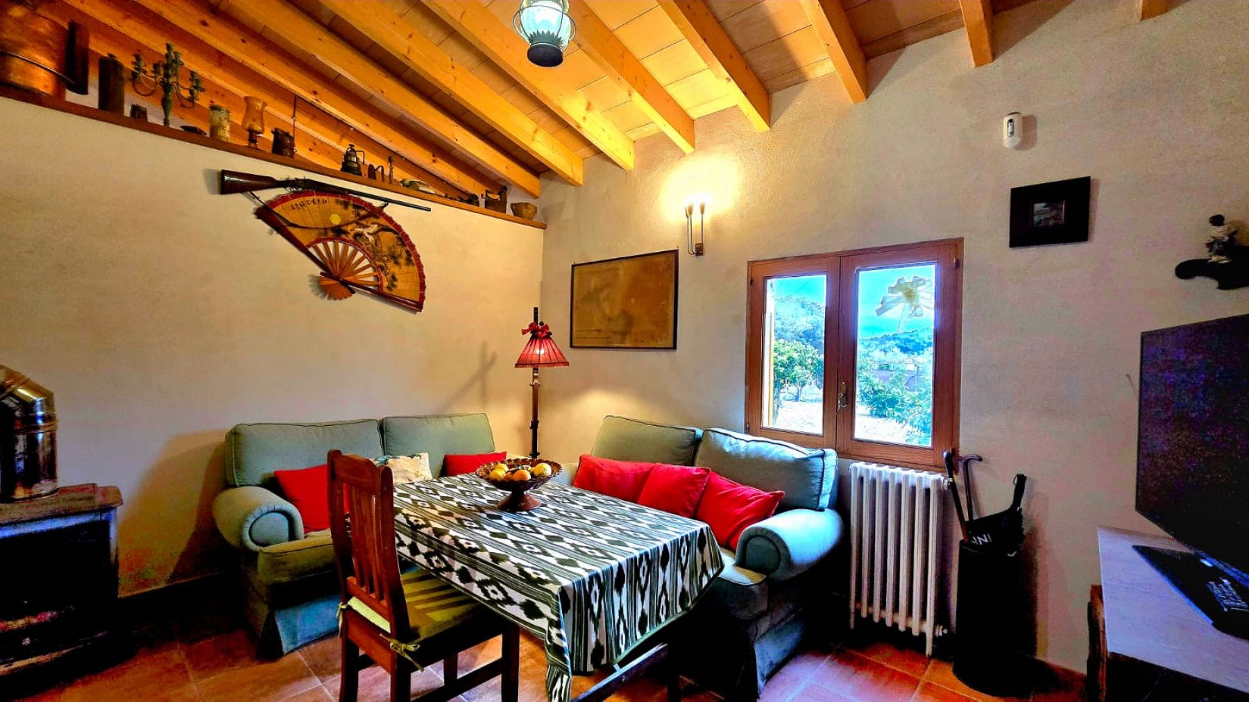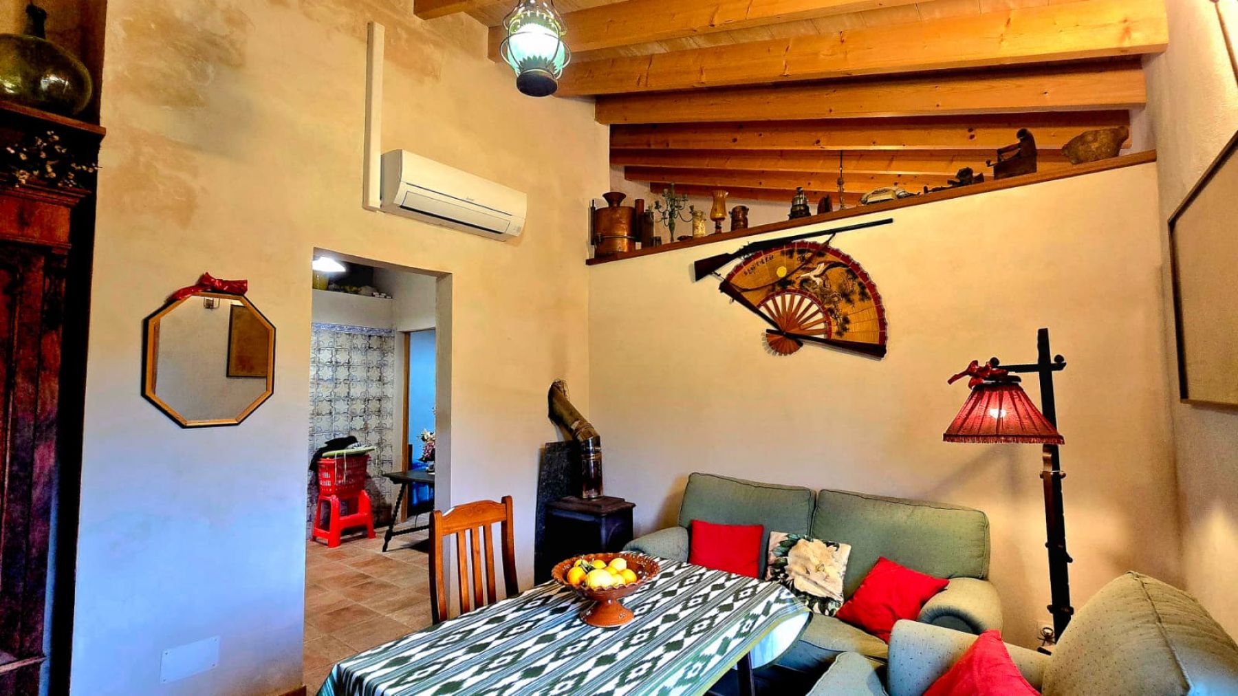 The main house, approximately 114m², comprises an entrance hall, living-dining room, separate fully furnished and equipped kitchen, three double bedrooms, two full bathrooms, and two porches, one directly accessible from the kitchen and the other at the main entrance, with direct access to the swimming pool. The second house, or guest cottage, was built in the traditional style of Mallorcan country houses and decorated with numerous antiques from that era. It includes a living-dining room, separate fully furnished and equipped kitchen, a full bathroom with shower, a laundry room, and two bedrooms, one of which is a double.