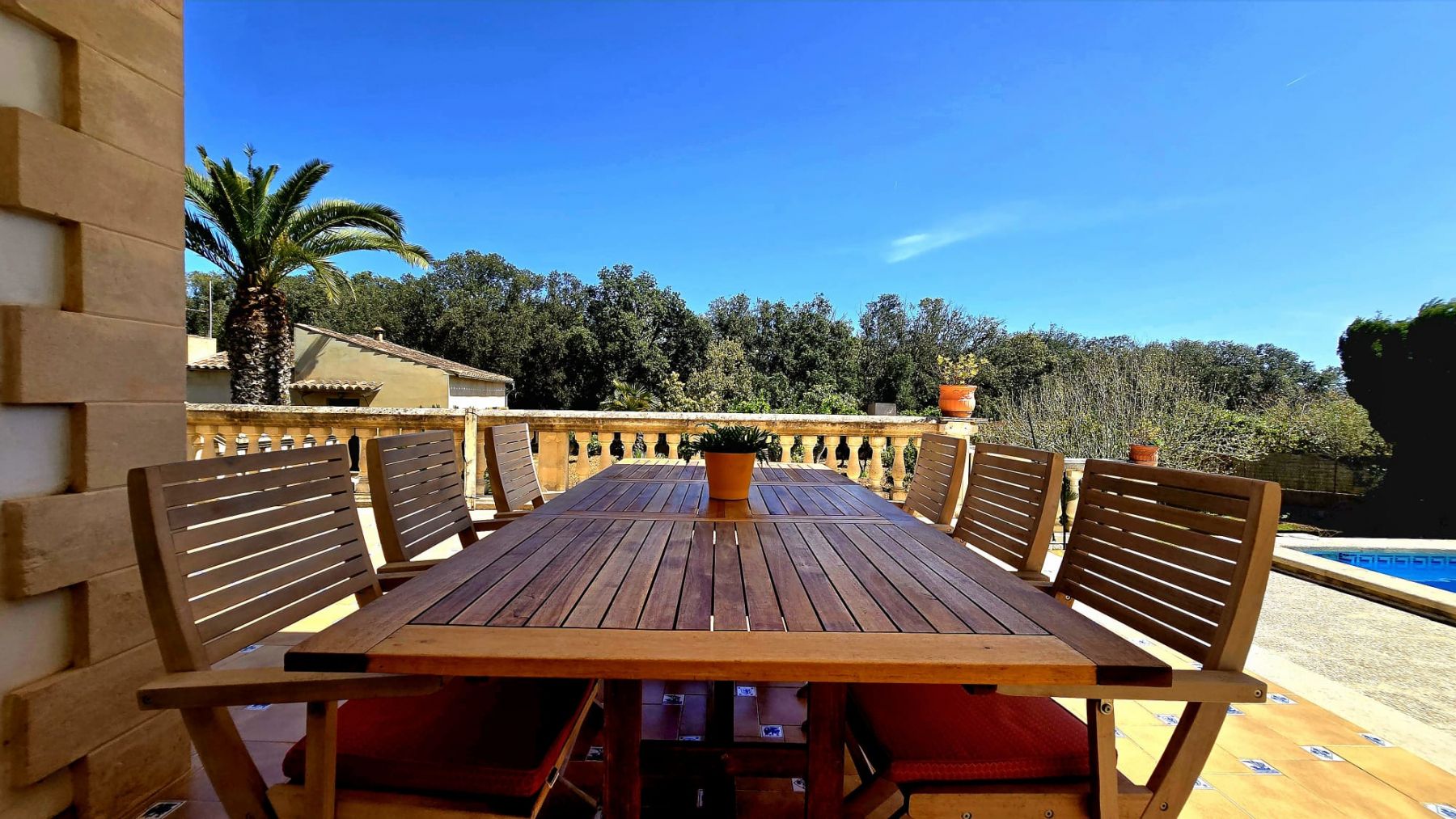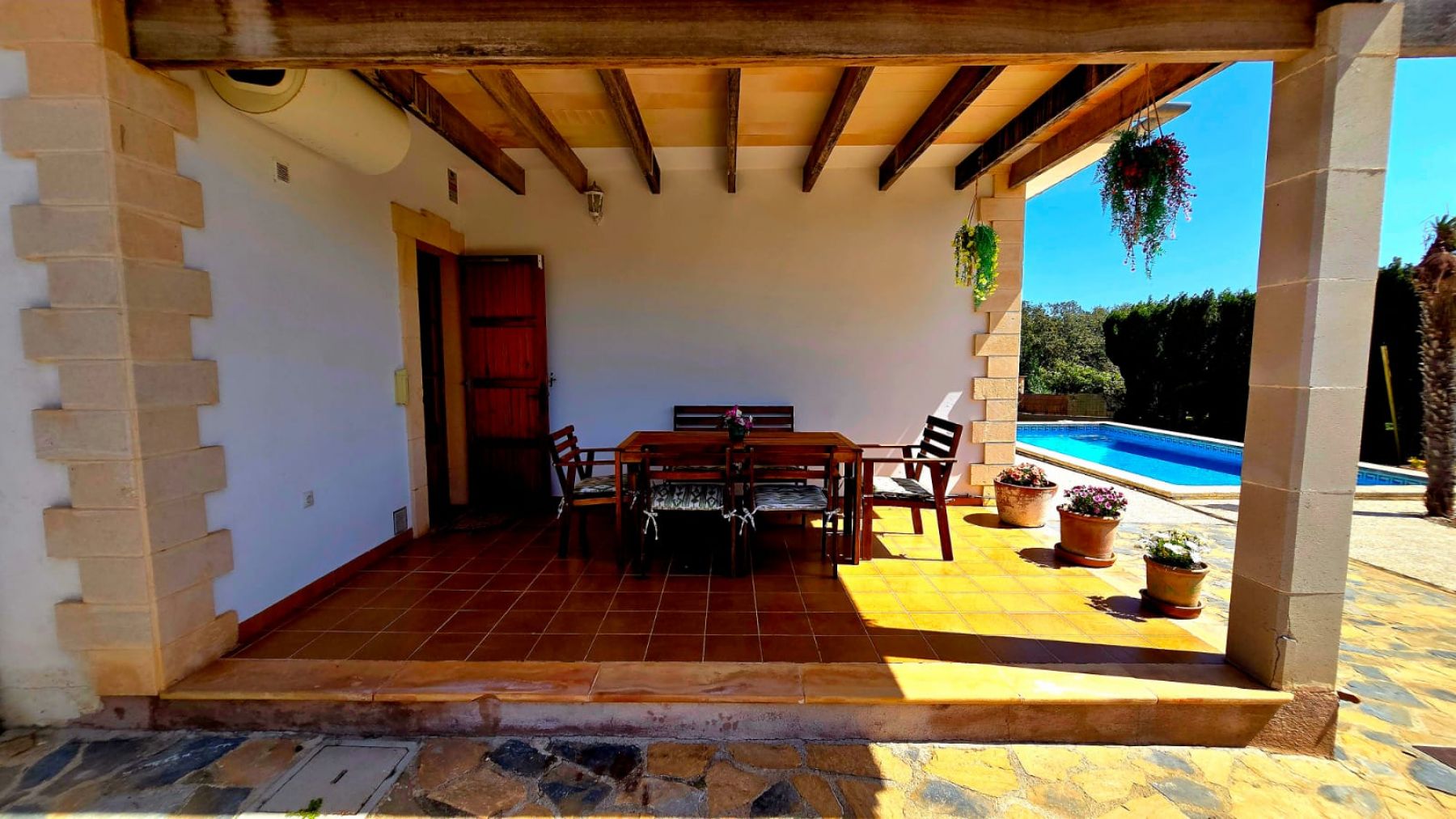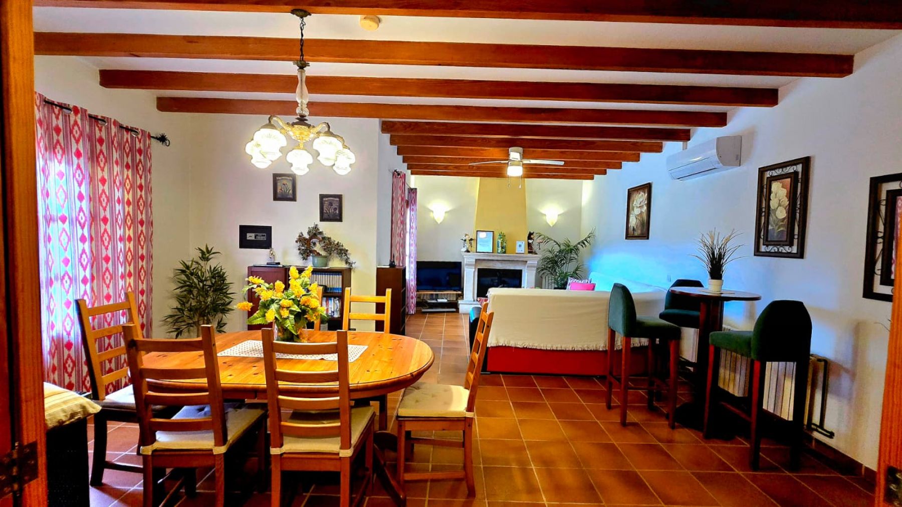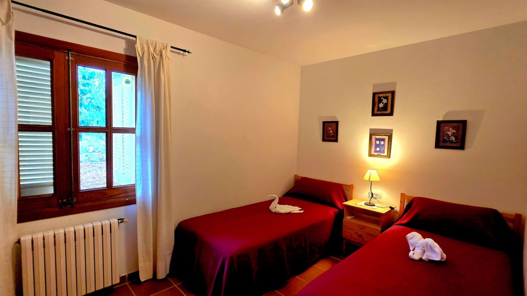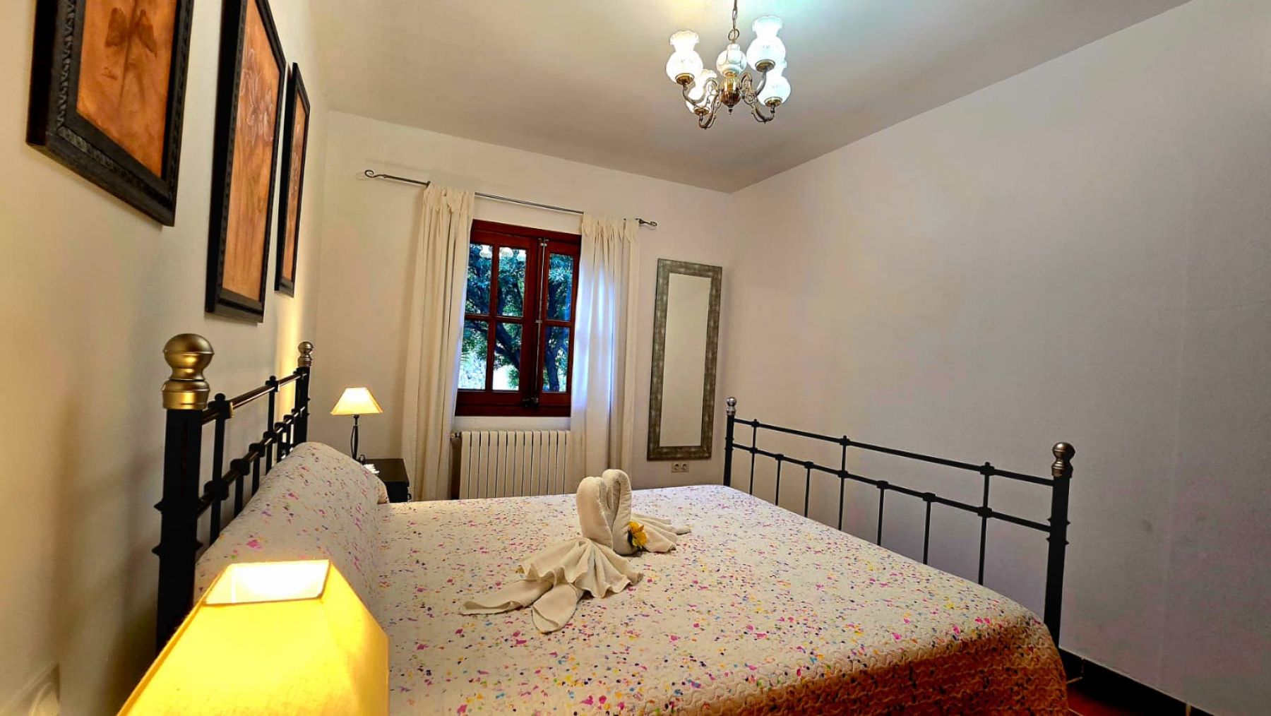 The main house, approximately 114m², comprises an entrance hall, living-dining room, separate fully furnished and equipped kitchen, three double bedrooms, two full bathrooms, and two porches, one directly accessible from the kitchen and the other at the main entrance, with direct access to the swimming pool. The second house, or guest cottage, was built in the traditional style of Mallorcan country houses and decorated with numerous antiques from that era. It includes a living-dining room, separate fully furnished and equipped kitchen, a full bathroom with shower, a laundry room, and two bedrooms, one of which is a double.