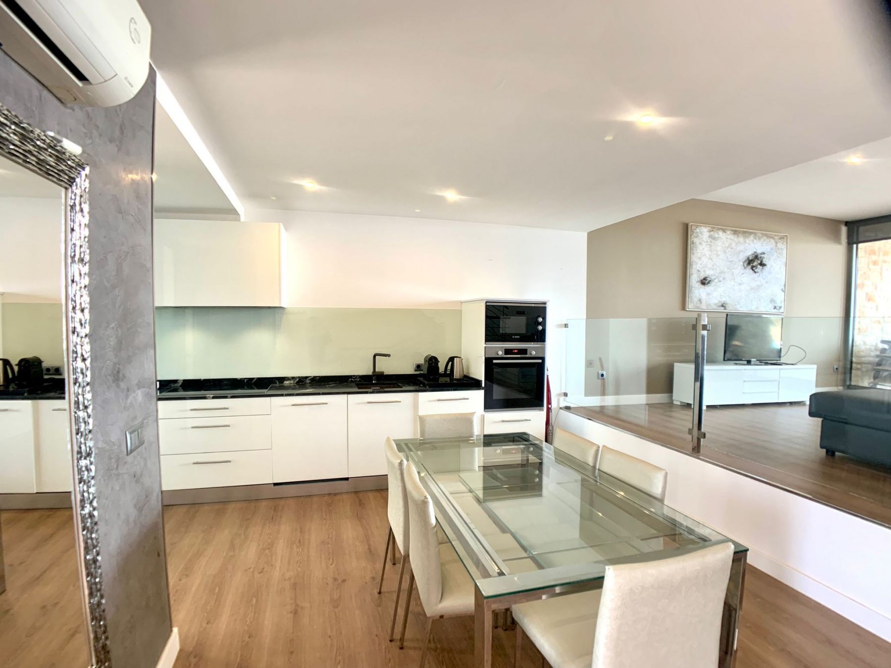 Höchste Qualität: Parkettböden, Klimaanlage (kalt/warm) und Oberflächen aus edlem Echtholz.