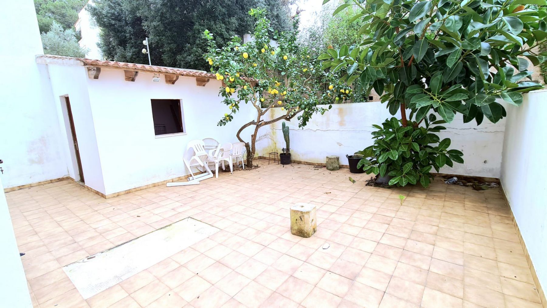 Großzügig angelegte Erdgeschosswohnung von ca. 100 m² mit großem Hinterhof und Veranda, befindlich in einem Wohnhaus, nur wenige Schritte vom wunderschönen und beliebten Strand von Canyamel entfernt.