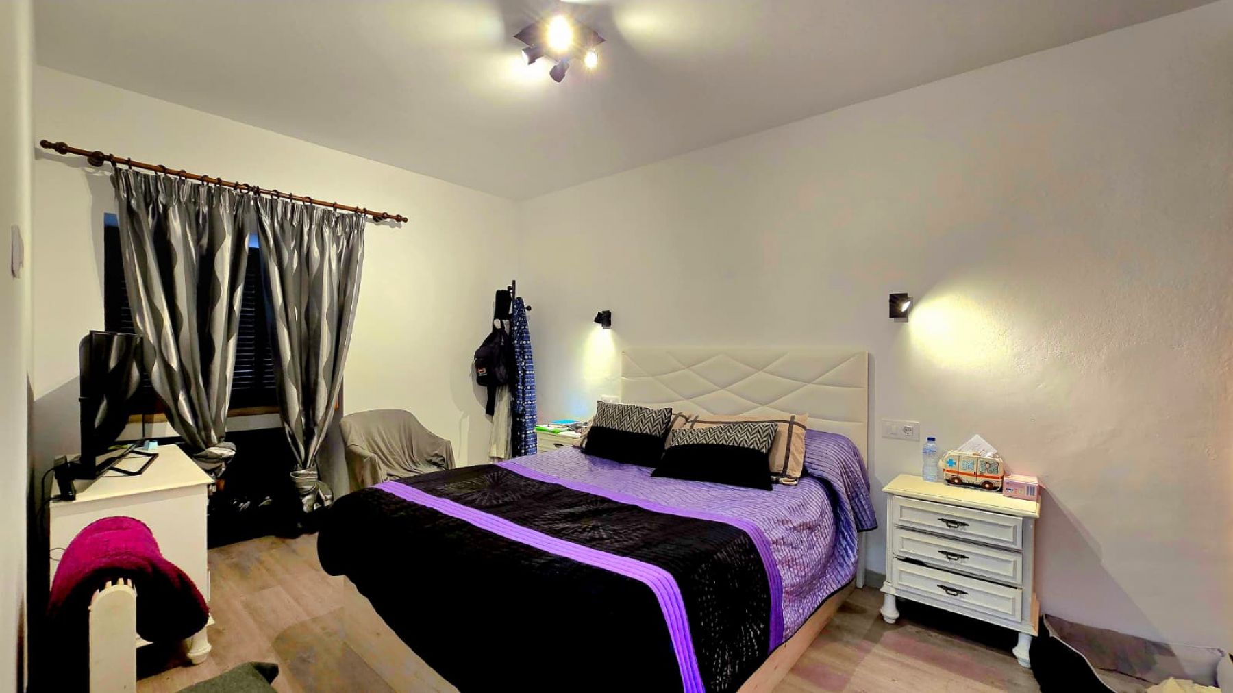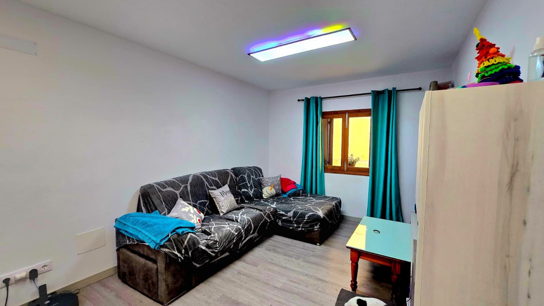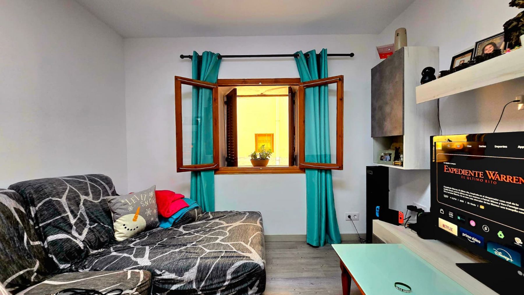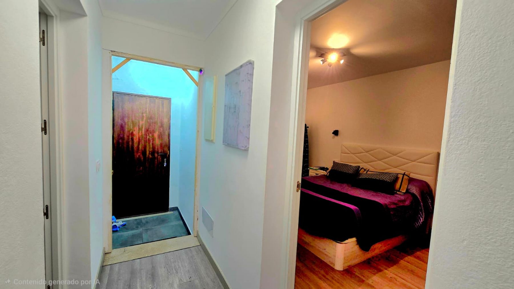 aufgeteilt in drei Doppelzimmer, ein Badezimmer mit Dusche, Wohn-Esszimmer mit offener Küche, einen Innenhof und einen Abstellraum.