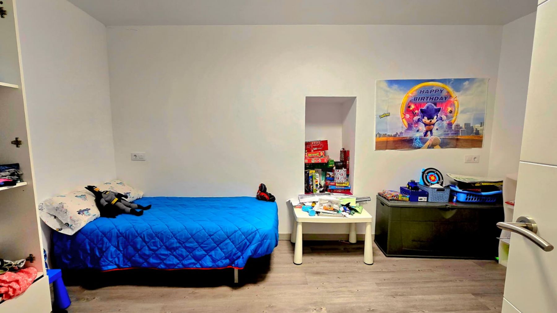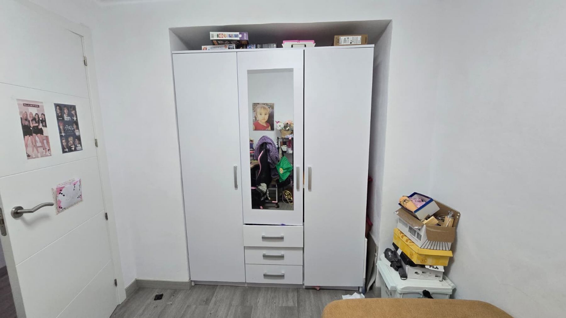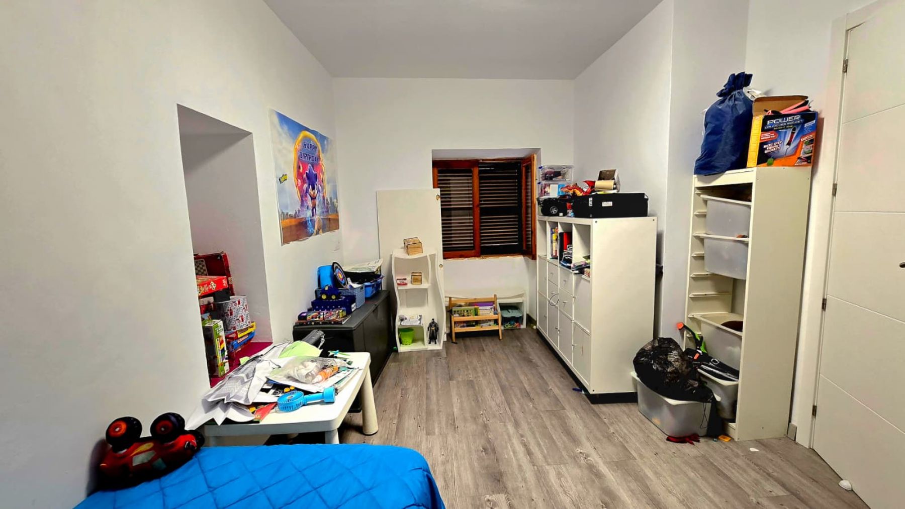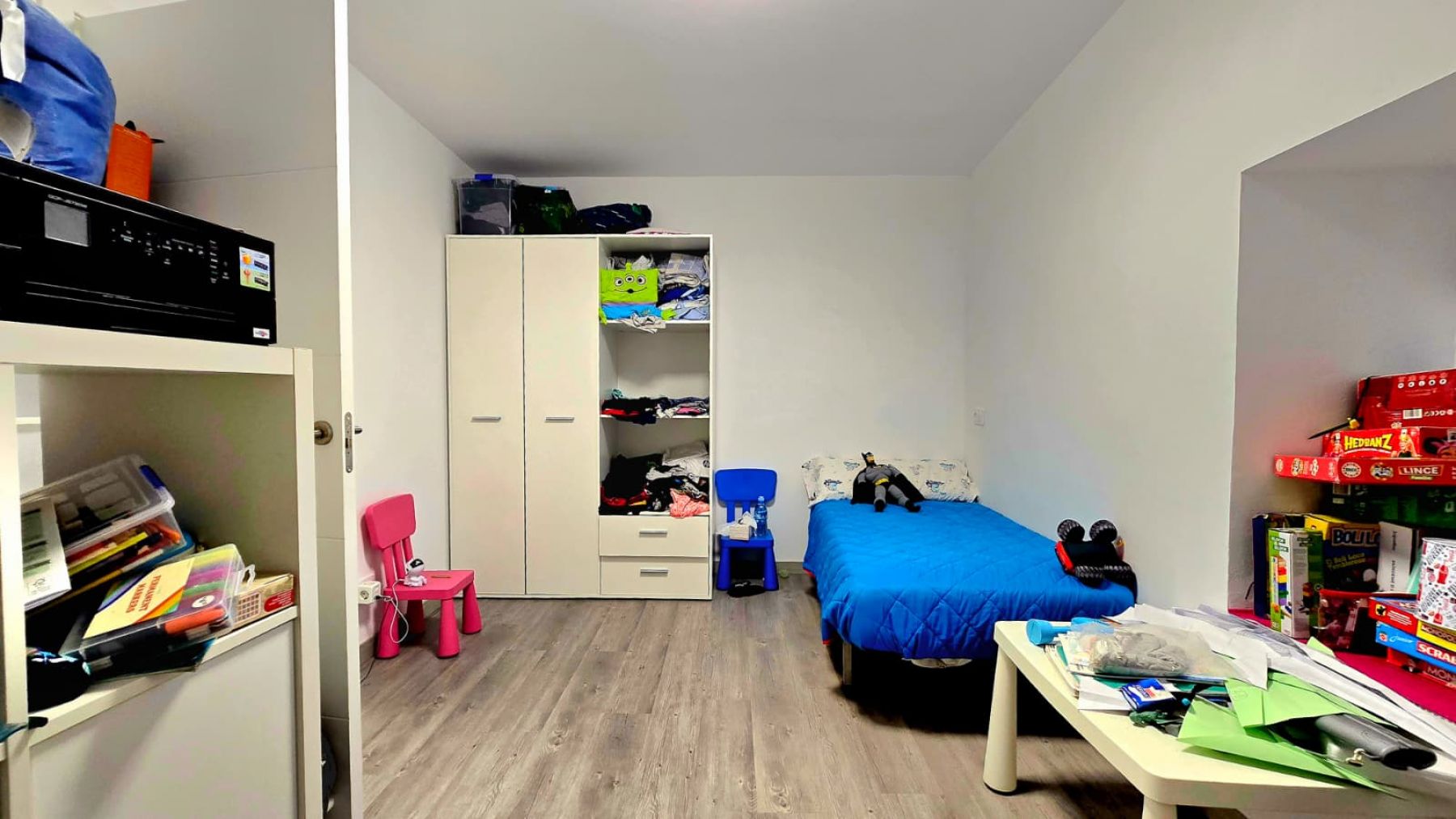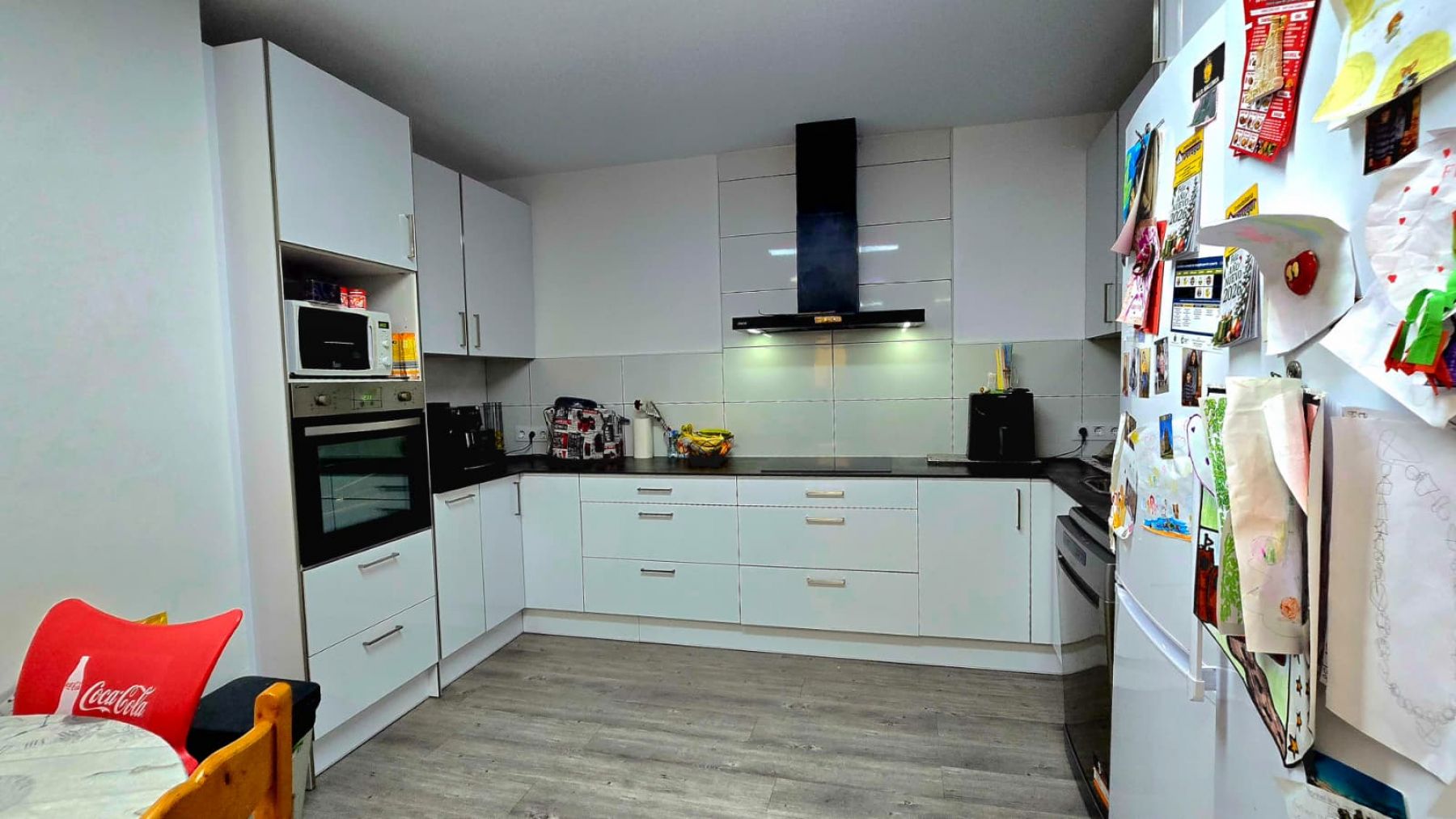 aufgeteilt in drei Doppelzimmer, ein Badezimmer mit Dusche, Wohn-Esszimmer mit offener Küche, einen Innenhof und einen Abstellraum.