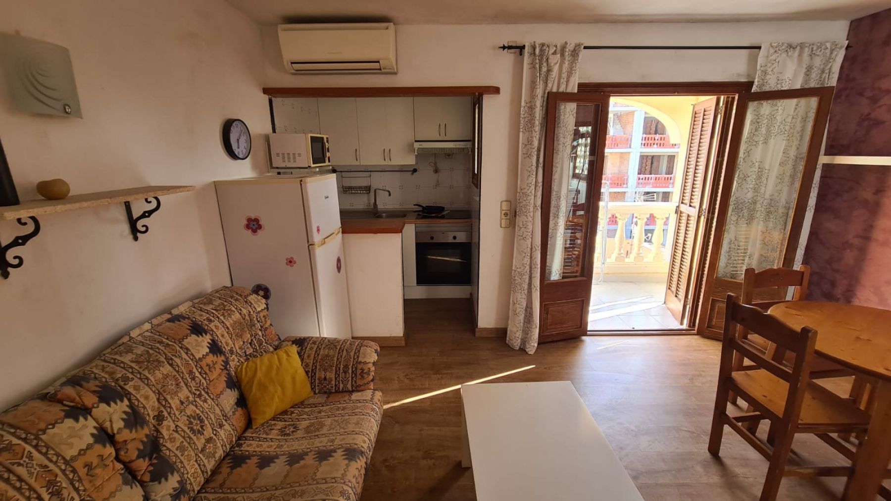 Flat in Cala Ratjada located in a quiet area near the school, on second floor without elevator. Distributed in a bedroom, living room with open kitchen, bathroom and balcony. It is rented annually. They do not allow pets.
