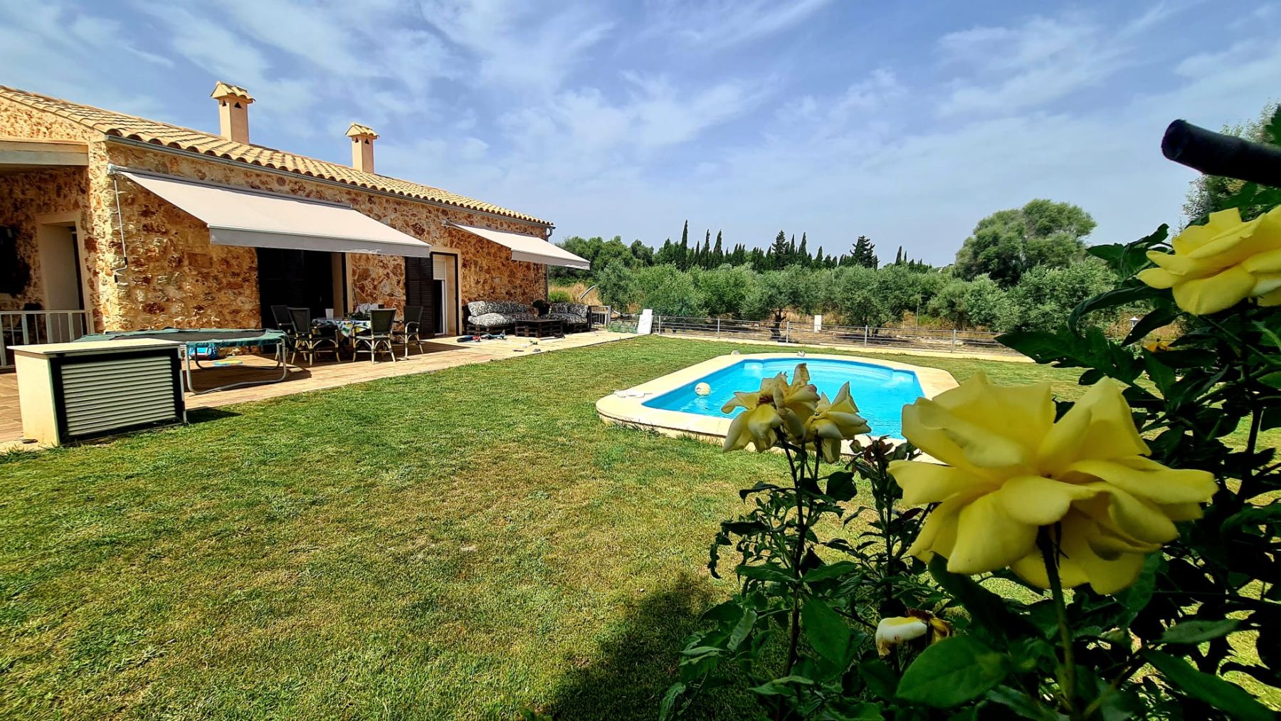 El inmueble se compone de sala de estar, salón comedor con chimenea muy luminoso, cocina totalmente equipada, tres dormitorios dobles con armarios empotrados, tres baños completos dos de ellos en suite, una amplia lavanderia y un porche en la entrada principal. La vivienda está provista de bomba de calor- frio y con preinstalación para calefacción .