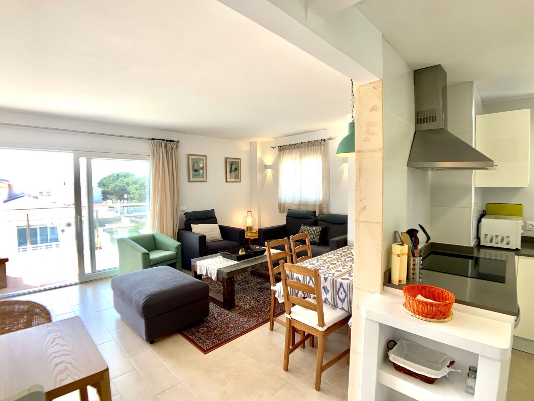 El verdadero tesoro se encuentra en la planta superior: una inmensa azotea privada con vistas panorámicas sobre los tejados de Cala Ratjada, ideal para cenas bajo las estrellas o relajarse al sol. Además, el edificio cuenta con una refrescante piscina comunitaria en su patio interior.