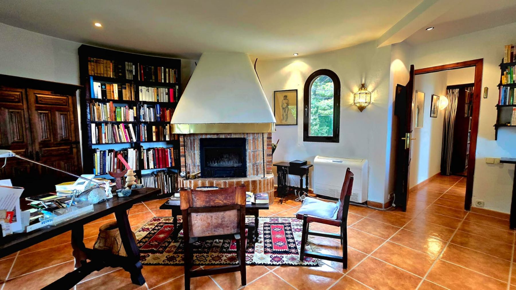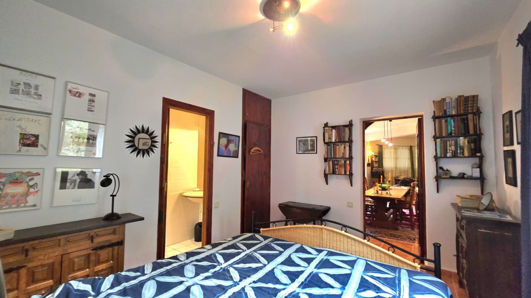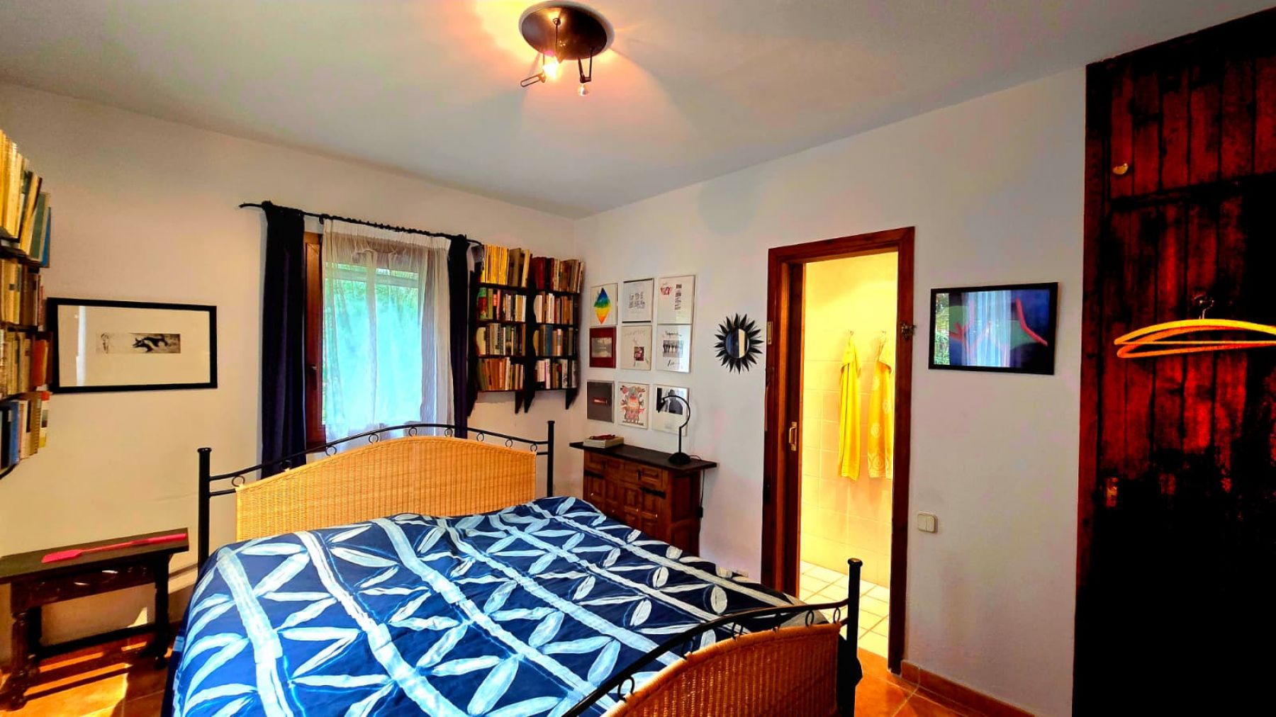 Primera planta: 2 dormitorios, uno de ellos también con chimenea, baño y acceso a una azotea.