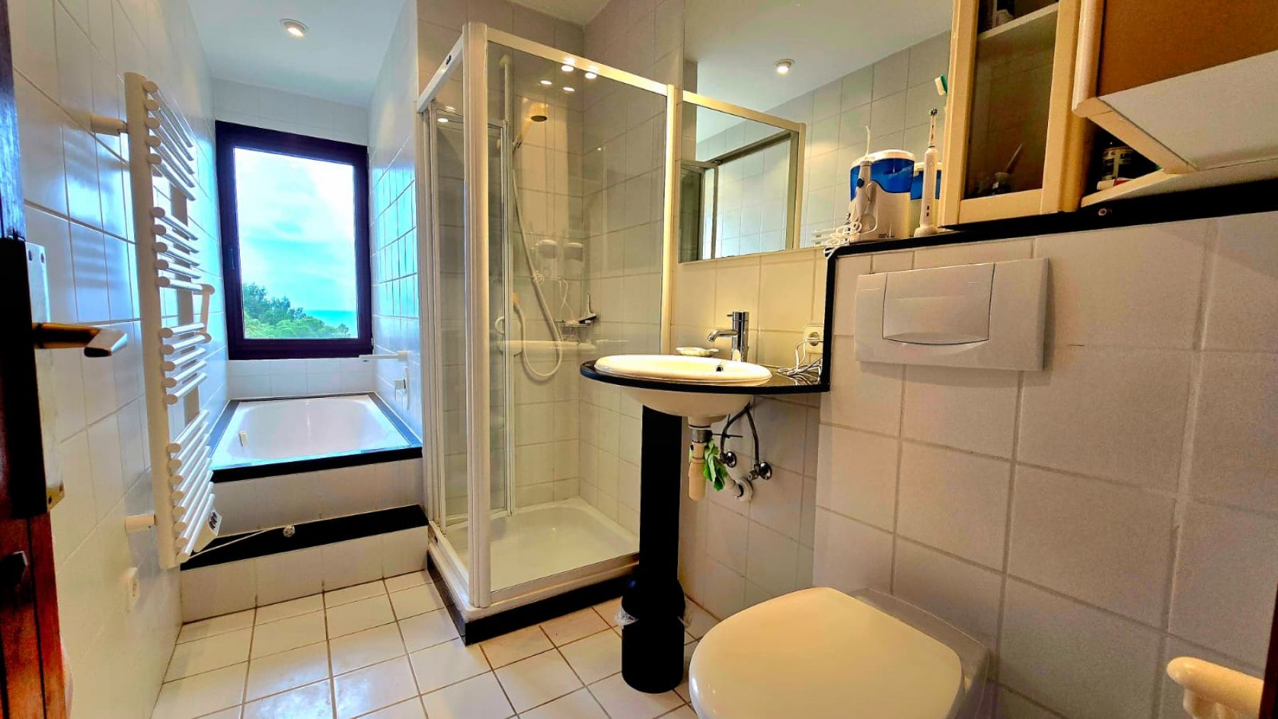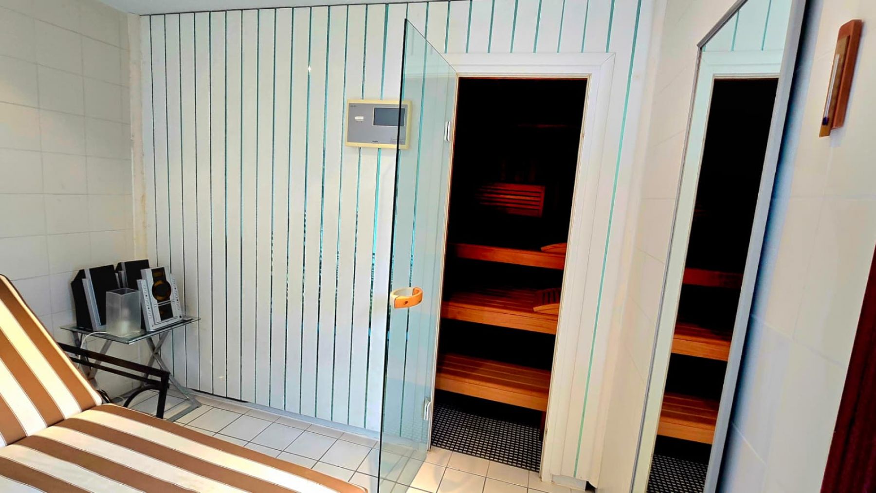 Ventanas de doble acristalamiento, 2 chimeneas, aire acondicionado en el salón, azotea, sauna, vistas al mar.