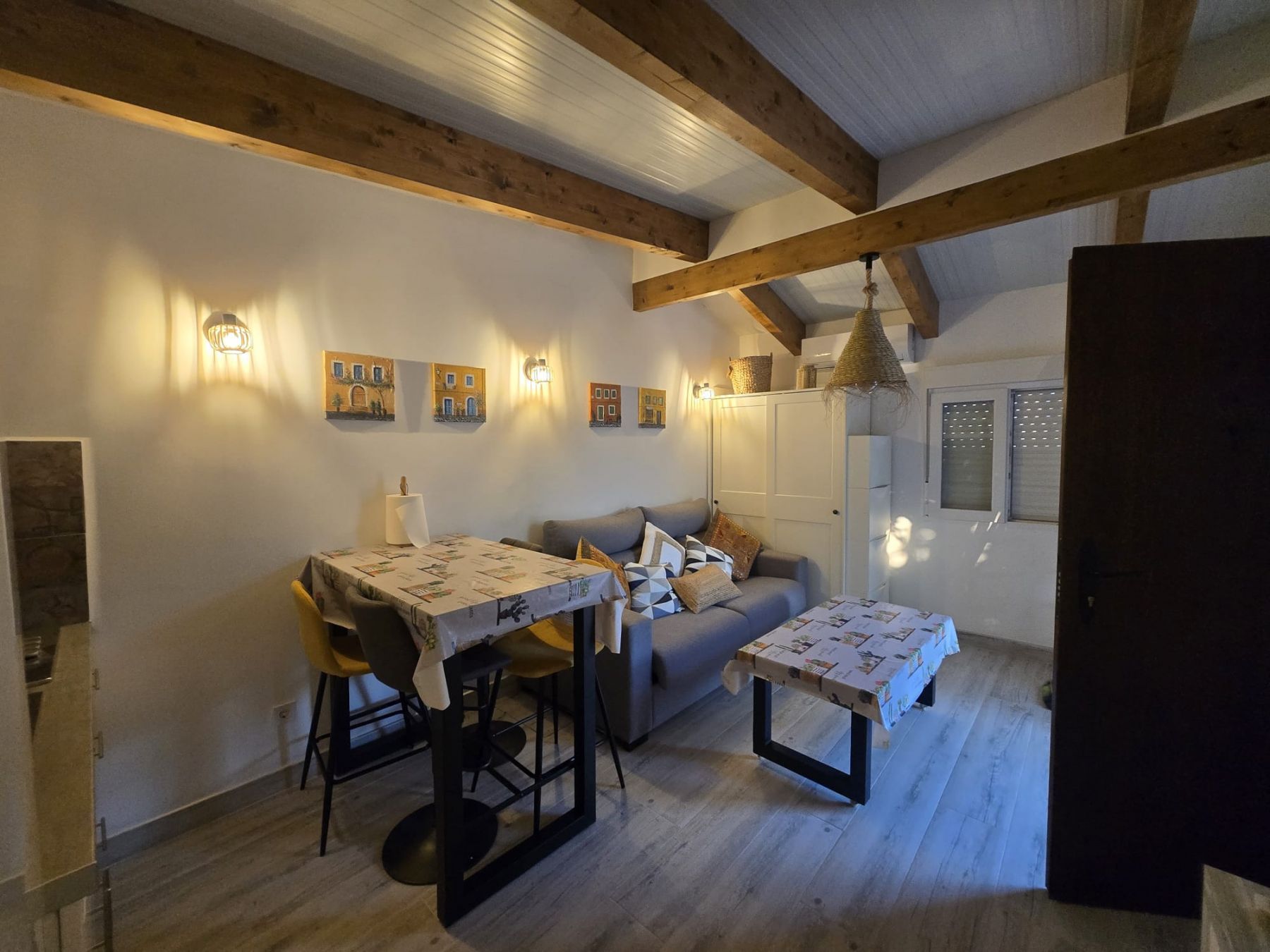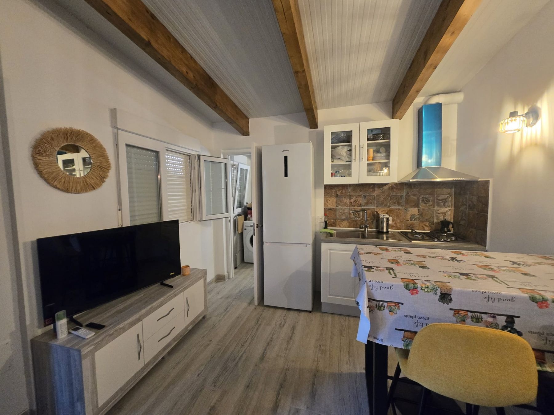 Salón - comedor con cocina, un baño con ducha y safre - piscina.
